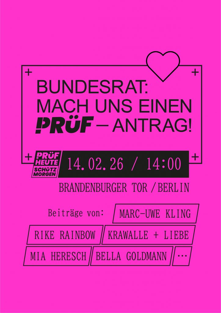 PRÜF Demos, immer am zweiten Samstag des Monats: